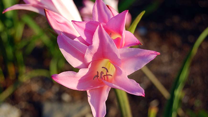 Луковицы амаркринума Говарда весной высаживают в грунт, заглубляя в почву наполовину. Можно выращивать в комнатном горшке. Место для размещения растения выбирают солнечное, проветриваемое, но без сквозняков. Высота стеблей достигает 60-70 см. Цветет в конце лета — начале осени. Цветы по форме напоминают лилии. Окрашены лепестки в нежный розовый цвет. Серединка и тычинки немного желтоватые. Сорт амаркринума Говарда великолепно смотрится в одиночных посадках. В смешанных цветниках следует придерживаться такого соседства, чтобы растение не затерялось среди других культур.