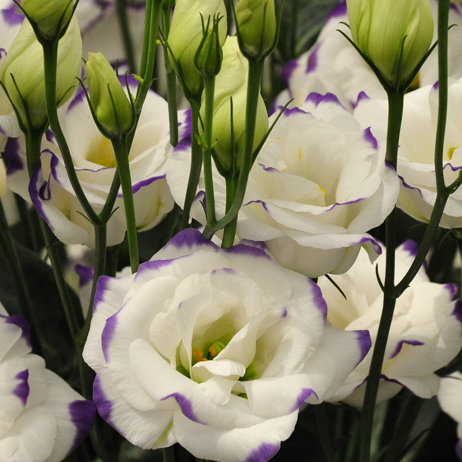 Эустома Супер Мэджик Капри Блю Пикоти - это настоящее волшебство для вашего сада! Это растение поразит вас своей красотой и изяществом. Сорт super magic capri blue picotee отличается высотой 70-90 см и цветами фиолетово-белого оттенка, которые будут радовать вас в течение 2-4 недель.