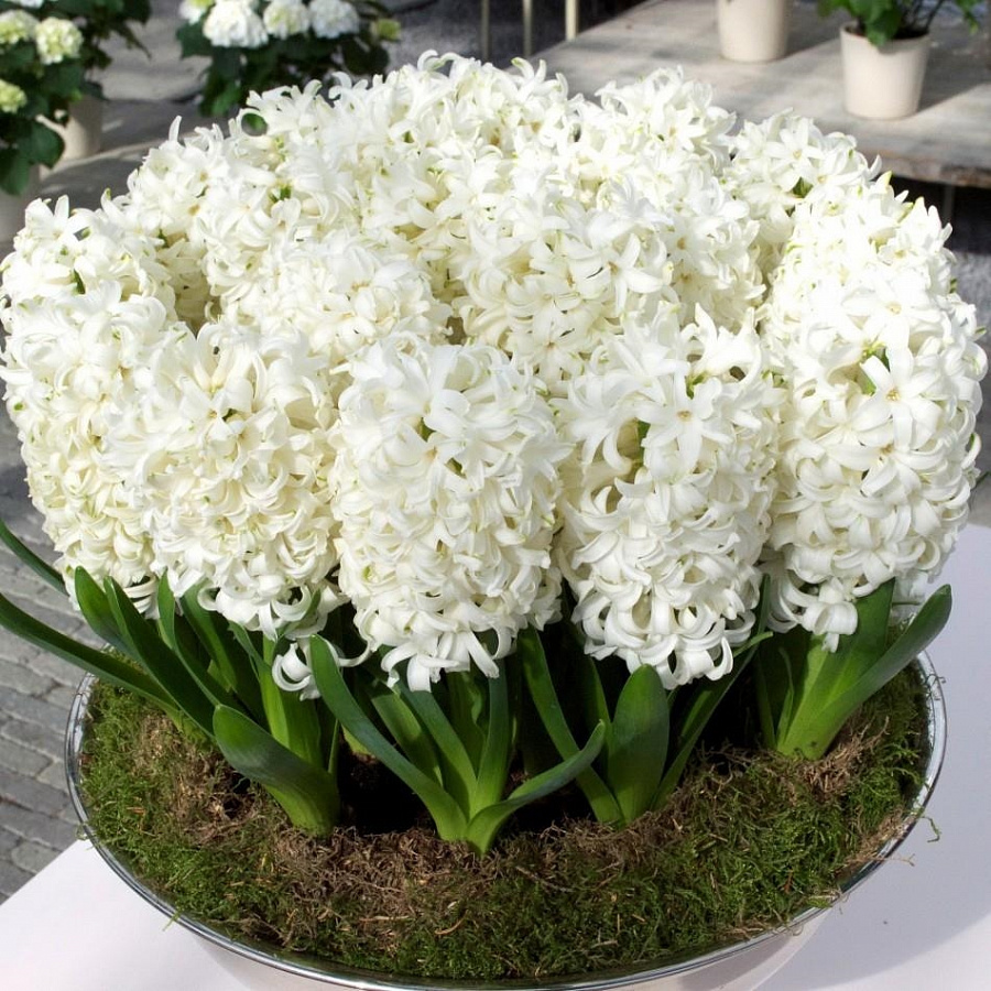 Луковицы гиацинта Louvre высаживают с конца августа до октября. Это неприхотливый многолетник, который хорошо растет практически в любых условиях. Но лучше всего луковицам гиацинта Louvre подходят достаточно освещенные участки с легкой почвой. Единственное, что не переносят растения — застоя влаги. Период цветения приходится на апрель — май. Мелкие белоснежные цветочки-звездочки собираются в крупные, плотные соцветия-кисти. Смотрятся они ажурно и очень воздушно. Такая красота сохраняется на цветоносах на протяжении двух с половиной-трех недель.