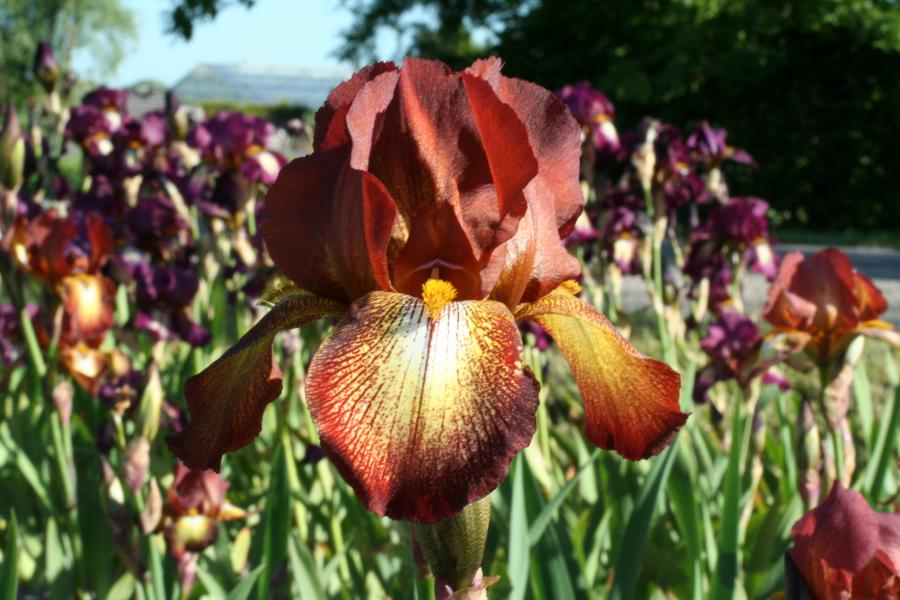 Ирис бородатый "Райд Джой" - это настоящее воплощение радости и красоты в вашем саду. Это растение поражает своей изысканной окраской цветков - красно-коричневый оттенок с кремово-жёлтым пятном в центре создает неповторимый эффект. Высота растения может достигать до 90 см, что делает его заметным акцентом в любом саду.