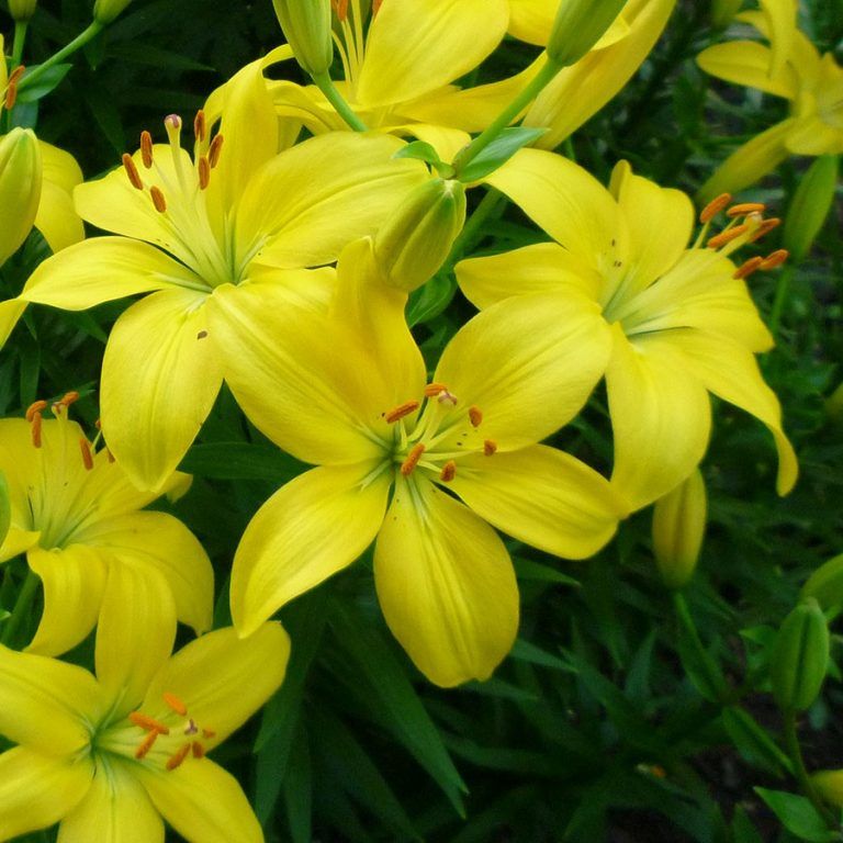 Саженцы и рассада лилии азиатской Жиронде (Lilium) способны оживить даже самый бледный цветник экзотическим канареечным окрасом своих цветов. Ненавязчивым дополнением служит зеленоватая сердцевина и крупные коричневые тычинки. Высокие стебли просто укрыты массивными цветками и бутонами. Аромат приглушенный, иногда может показаться, что эти цветы вообще не издают запаха.