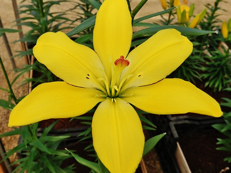 Луковицы лилии ЛА-гибрид Йеллоу Кокот (Lilium LA-hybrid Yellow Cocote) являются яркими представителями своей гибридной группы. На крепких метровых цветоносах этого растения распускаются красивые цветки диаметром 15-17 см. Им присуща интересная особенность – у тычинок лилий данного сорта отсутствуют пыльники, поэтому можно не опасаться испачкать одежду пыльцой. Цветки лилии Йеллоу Кокот имеют лепестки насыщенного лимонно-желтого цвета с тонким темно-вишневым кантом по краю и розово-красное рыльце. Эти растения хорошо переносят заморозки и не нуждаются в частых пересадках.