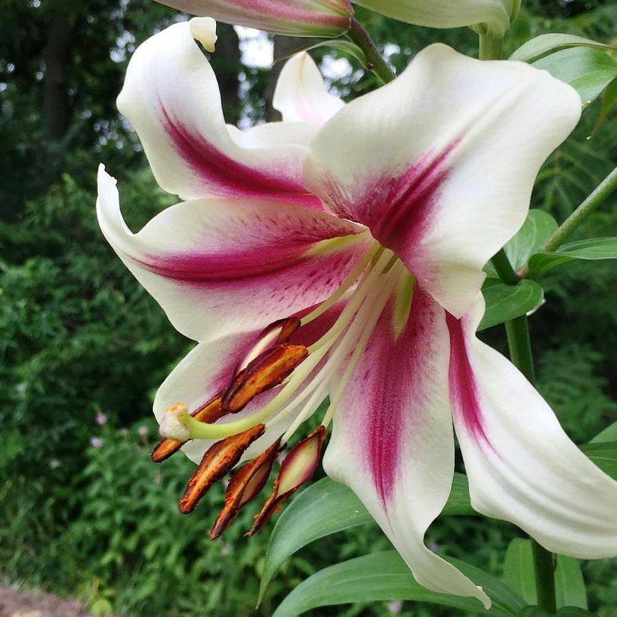 Луковицы лилии ОТ-гибрида Пассиональ (Passionale)– один из самых оригинальных сортов, благодаря необычному переходу из белого цвета в бордовый на лепестках. На одном побеге завязывается несколько соцветий. Атласные лепестки изящно завиваются наружу. Темно-зеленые листья прекрасно оттеняют цветы удивительных оттенков.