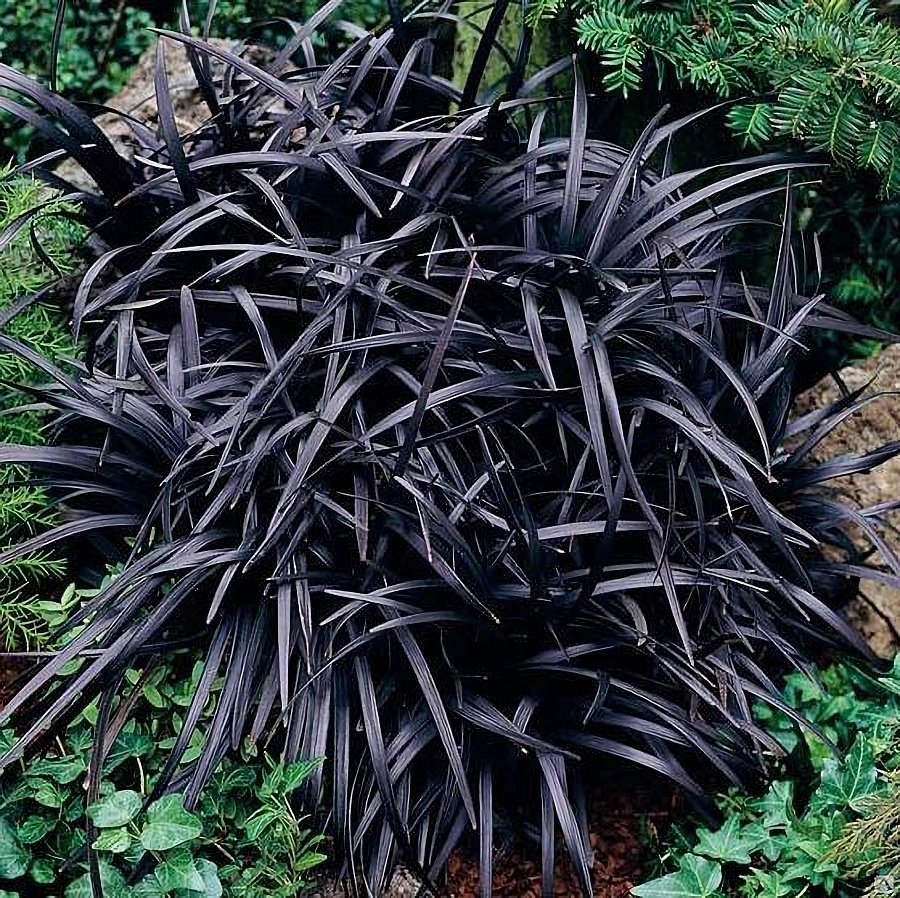 Саженцы офиопогона плоскострелого Нигер (Ophiopogon planiscapus, Niger) превращаются в элегантный декоративный злак, который станет изюминкой любой открытой территории. Высота взрослого растения достигает 25-30 сантиметров. Темные, черно-фиолетовые листья контрастируют с колокольчатыми цветами бело-розового окраса, создавая эффектную живую композицию. Плодоносит мелкими черно-синими несъедобными плодами. Сравнительно недавно используются в декоре парковых клумб, альпийских горок. Ландшафтные дизайнеры почерпнули вдохновение из японских традиций.