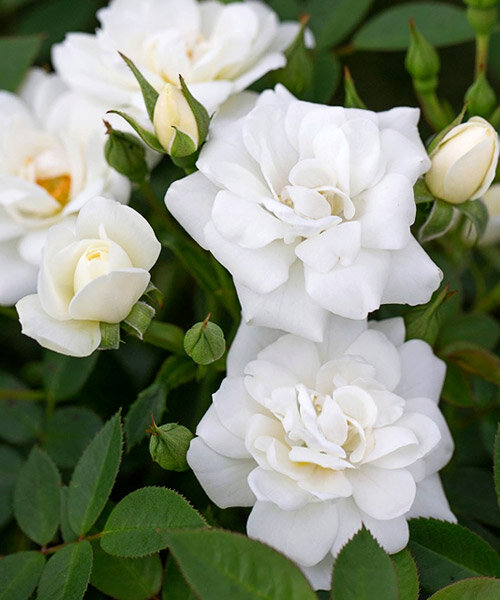 Роза почвопокровная вайт кове - это настоящая жемчужина среди садовых растений. Ее стебли украшены нежными белыми цветами, которые радуют глаз в течение нескольких месяцев весной и летом. Высота этого растения может достигать до 75 см, что делает его идеальным выбором для газонов, групповых посадок или одиночных композиций.
